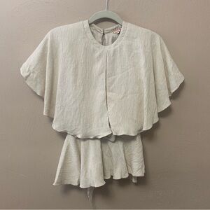 Johanna Ortiz Amor Es Belted Textured Crepe Top Cream White Beige Size 0 New NWT