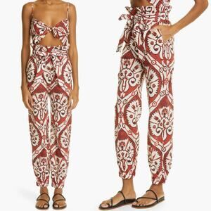Johanna Ortiz Baru Nomadic Hunting Paperbag Cotton Pants Rust Red Size 6 NWT