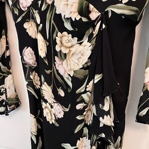 Johanna Ortiz Black Floral Dress with front slit - size 4. Perfect lightweight material and well constructed