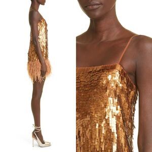 Johanna Ortiz Chemical Attraction Metallic Trim Mini Dress Brown Size 12 $1995