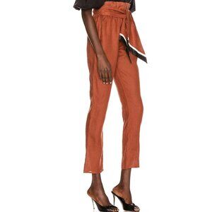 Johanna Ortiz Deep Terracotta Linen Pants with Belt