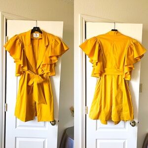 Johanna Ortiz Tulip Evolution Jacket Dress Ruffle Yellow Wrap Dandelion 2 EUC