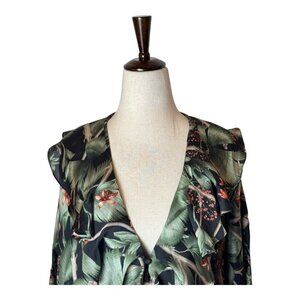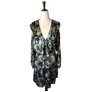 Johanna Ortiz X H&M Dress Women Medium Green Tropical Floral Flounce Mini NWT
