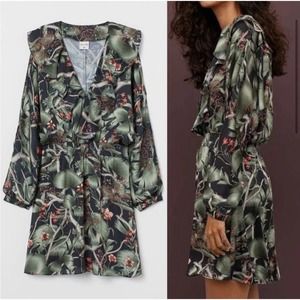 Johanna Ortiz x H&M Green Floral Tropical Flounce Smocked Dress Size L NWOT