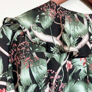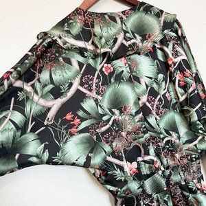 Johanna Ortiz x H&M Patterned Dress with Flounce Mini Ruffle Tropical Silky S