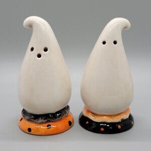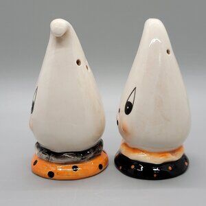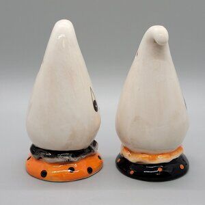 Johanna Parker Halloween Black Orange Ghost Salt & Pepper Shakers Set Figurines