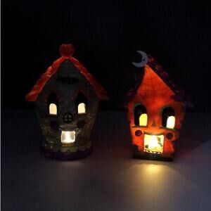 Johanna Parker Happy Haunted House Light Up Halloween Set of 2 Houses 8”