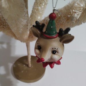 Johanna Parker Christmas Holiday Reindeer Character Ornament will add a unique vintage style charm to your holiday decor. Hang him on your Christmas tree or from a mantle.