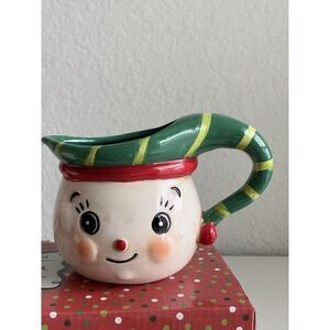 Johanna Parker Christmas Snowman Elves Elf Red Green Sugar And Creamer Set NEW.