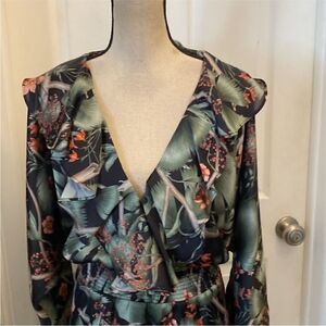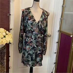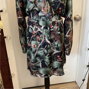 Embrace elegance with this floral print dress. Featuring a chic design with long sleeves, it's perfect for any occasion. The green and black hues add a touch of sophistication. New, no tags