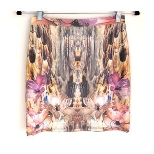 Johanne Beck Abstract Floral Mini Skirt Pink Brown Size Small Made USA Stretch
