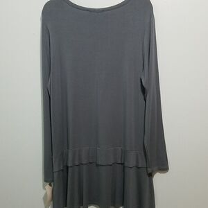 Super soft. muted green color. Shoulder to shoulder is 16.5 inches, armpit to armpit measures 21.5 inches and the length is 32.5 inches. It is stretchy. made of rayon and spandex. NWT. Open to reasonable offers.