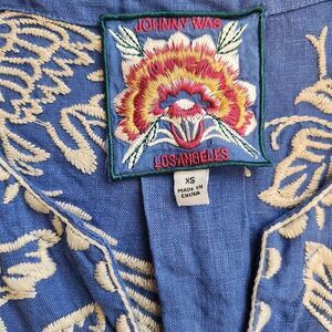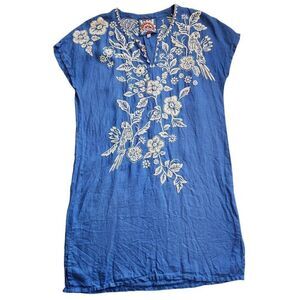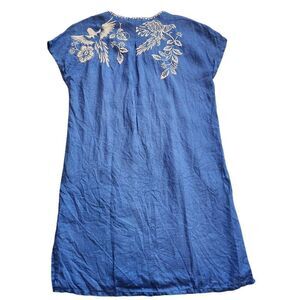 Johhny Was Dress Womens XS 100% Linen Embroidered Floral Birds Boho Oversized