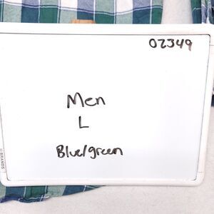 John Ashford Gingham Flannel Casual Button Up Shirt Mens Size L Blue Green White