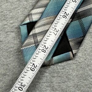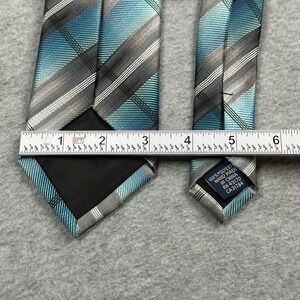 John Ashford Mens Tie Teal Gray Plaid Washable Polyester Stain Resistant