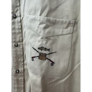 John Ashford Sport Men's Tan Long Button-Up Embroidered Trout Fishing Shirt M