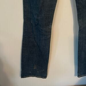 John B. Stetson Classic Bootcut Jeans in women's Size 8 Long. No 816. Jeans have some paint stains splattered on the front below the knee and on the back near the hem of one leg. Jeans are otherwise in good used condition with no holes. Perfectly broken in and comfortable. Please see close-up pictures for condition details. Would make good work jeans, or cut off for shorts. Waist measures approx 29.5 in around, rise approx 8 in, inseam approx 32.75 in, leg opening approx 8.75 in. Cotton & Lycra.