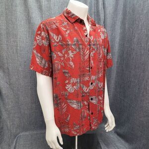 John Bartlett 100% Silk Hawaiian Shirt Berry Red / Silver Floral Men's XL