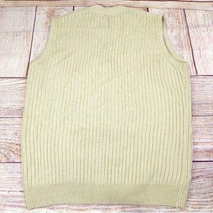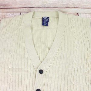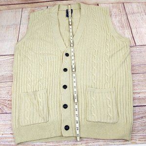 John Blair Men Cable Knit Sleeveless Sweater Vest Button Front 2 Pockets Cream L
