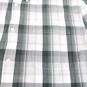 John Blair Fine Menswear Men's White, Green and Tan Checkered Plaid Button Down Short Sleeve Dress Shirt with One Front Pocket - Size L - GUC