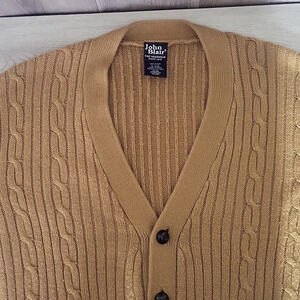 John Blair Vintage Mens Camel Cable Knit Long Sleeve Grandpa Sweater Size MRG