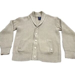John Blair Vintage Men's Cozy Cowl Collared Cardigan Sweater; Pockets; Tan; Med