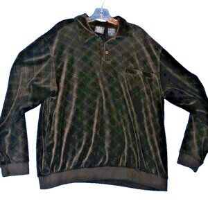 John Blair Vintage Men’s XL Black Velour Polo Sweater – Long Sleeve, Collared