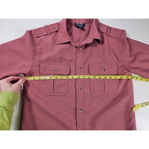 John Blair linen look pilot shirt coral red size small double pocket EUC ^