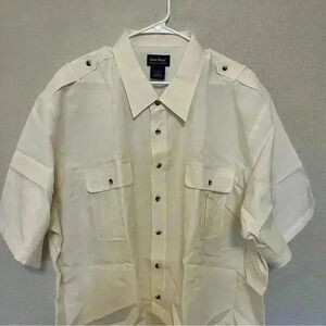 John Blair polyester ivory button down shirt with two front pockets NWOT