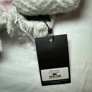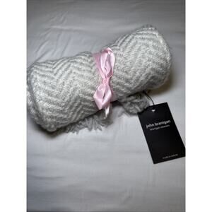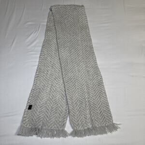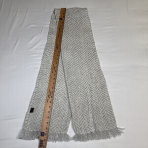 John Branigan Weavers Wool Blend Fringe Scarf Gray Cream Herringbone Womens NWT