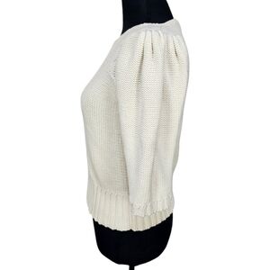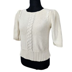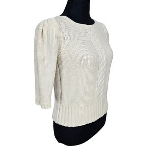 John Bull London Hand Framed Ivory Cable Knit Puffed Elbow Sleeve Sweater Medium