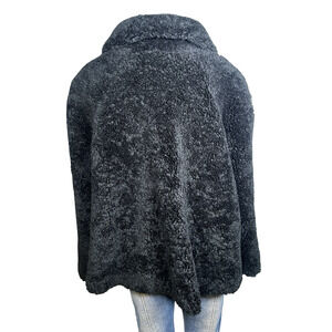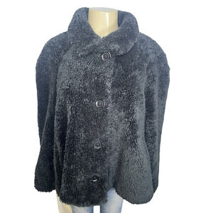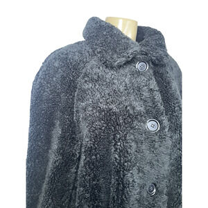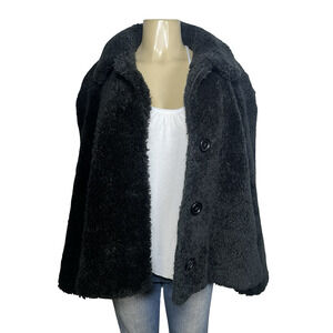 John Caruana Coat Womens Large Black Faux Fur Teddy Button Front Lined Made USA