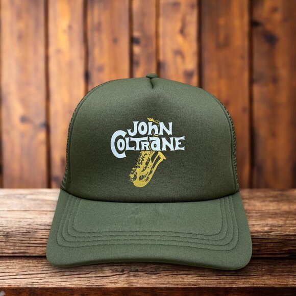John Coltrane Mens Trucker Hat Olive Snapback 60s Jazz Baseball Cap