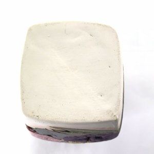 “Slabs of clay are pressed into plaster molds made from real flowers and leaves and pieced together with various twists and textures to form the vase. John occasionally sculpts birds and adds them before leaving the vase to dry for a couple of days. The vase is then painted with colored clays and fired in a kiln. After the first firing the vase is washed with a dark stain to give it depth and an aged look. Finally subtle details are applied by hand and an airbrush before the vase is signed dated and fired yet again”.