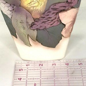John Davis Pottery Ceramic Vase 12" Sculpted Inlaid Floral Bouquet With Birds