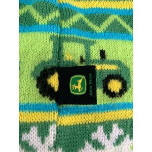 John Deer Toddle One Size Tractor Snowflake Green Blue Beanie Hat Pompom