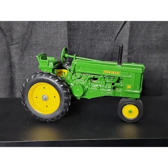 This John Deere Model 70 Row Crop Farm Tractor by ERTL is a must-have for every toy vehicle collector. It features a 1:16 scale and is made of high-quality diecast material, making it durable and long-lasting. The tractor's green and yellow color combination and agriculture theme make it perfect for display or play.