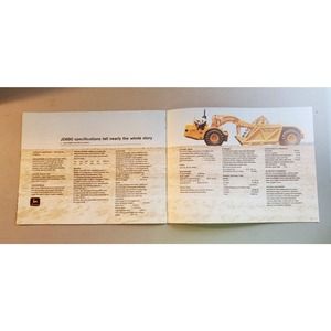 John Deere sales booklet for model 860 Scraper. Came from a closed dealership, not reprinted. In good condition may be some smudges on the outside cover