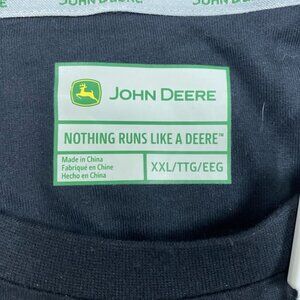 John Deere short-sleeve crew neck t-shirt with embroidered logo on front. XXL size; lightweight black cotton construction. Brand new, tag attached.