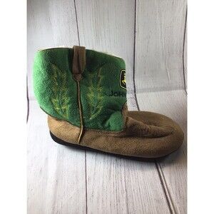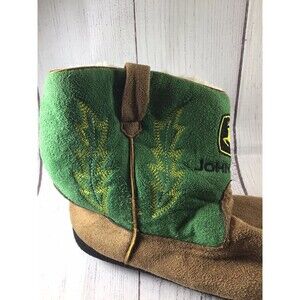 John Deere Cowboy Boot Slippers Boys Brown/Green Youth L/XL 3-5
