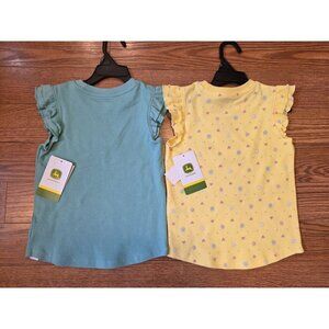 John Deere Girls Sz 4T Ruffle Short Sleeve Shirts (2) Yellow Blue Spring Nwt
