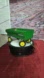 Classic John Deere toy cart. Green body with yellow wheels.