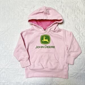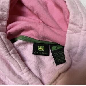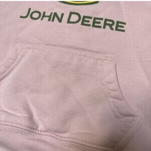 John Deere pullover hoodie sweatshirt. Light pink with logo graphic. Good condition, light wash wear and light spot on front pocket. Size 3T.