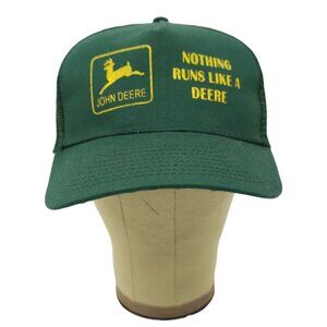 John Deere Mesh Strapback Cap Trucker Baseball Hat Nothing Runs Like A Deere Logo
