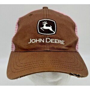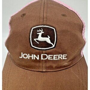 John Deere Pink Brown Ball Cap Trucker Hat Snapback Adjustable