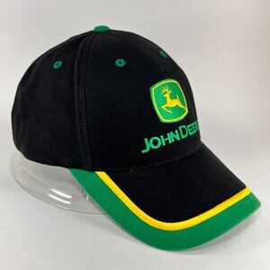 John Deere Strap Back Cap Hat Black Baseball Spell Out Tractor Farming Logo Mens