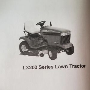 Preowned John Deere TM1754 Technical Manual for LX 200 Series Lawn Tractors July 2001. Cover has wear from use and may be dirty. Pages are in good condition. These manuals came from a closed dealership and are JD originals not reprints.