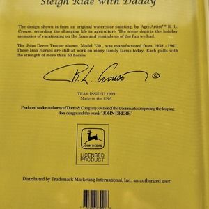 John Deere Tractor 730 Serving Tray-Sleigh Ride with Daddy-Vintage 1999 - Signed