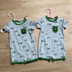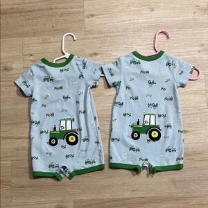 John Deere Tractor Print Twin Rompers | Size 3/6M | Baby Matching Set