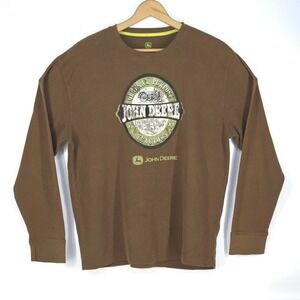 John Deere Tractor Logo Thermal Long Sleeve Shirt Men's XL Brown Crewneck Waffle